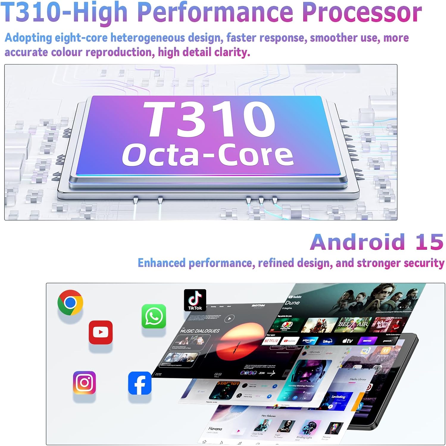 | High performance with Octa-core T310 processor and 18GB RAM | A few complaints about slow touch screen response |