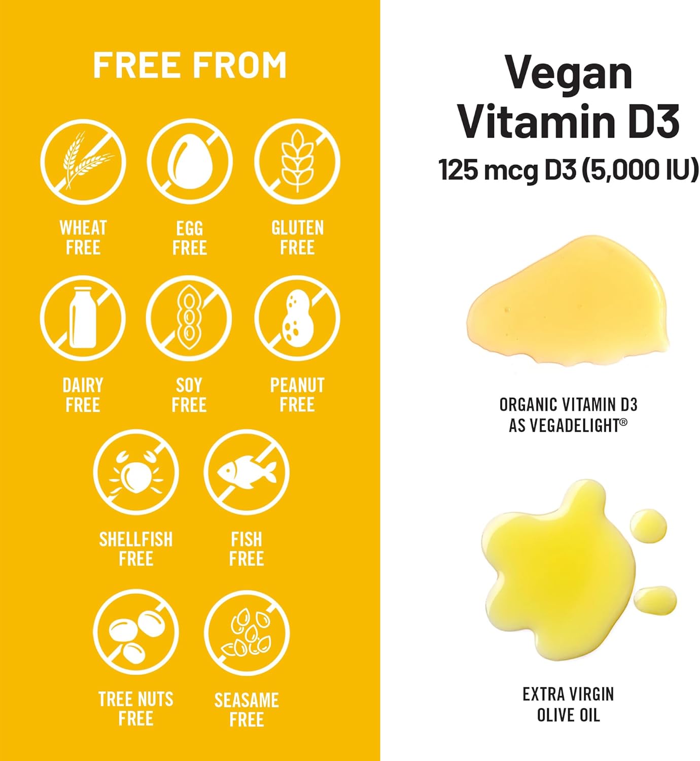 - VEGAN, NON-GMO: NatureWise Vegan Vitamin D3 is vegan, non-GMO, gluten-free, and does not contain wheat, eggs, soy, dairy, tree nuts, peanuts, fish, or shellfish.